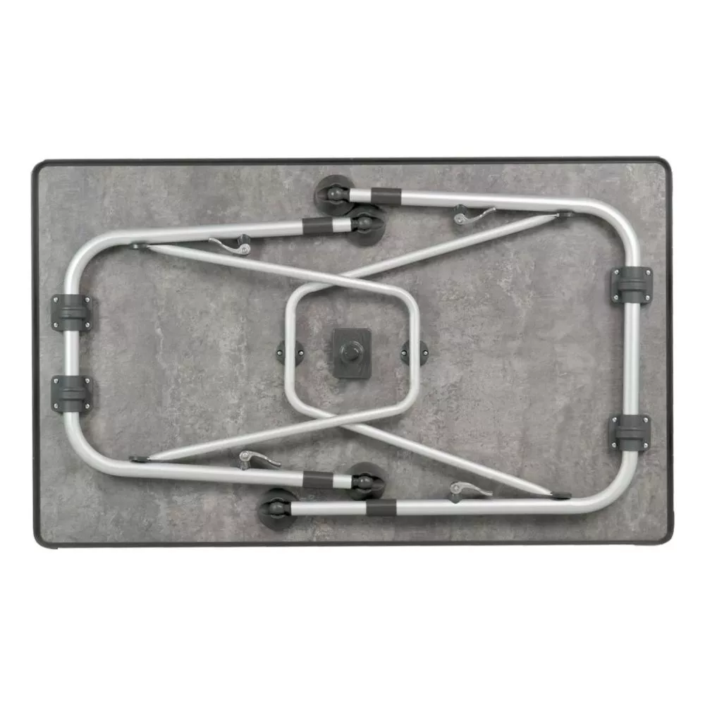 Der standfeste Camping-Klapptisch Westfield Superb 115 erscheint mit einem Gestell aus stabilem Aluminium-Rundrohr und einer wetterfesten Tischplatte in elegantem Design. Alle 4 Beine sind einzeln und stufenlos höhenverstellbar und mit einer einfach zu bedienenden Exzenterverriegelung ausgestattet. Die Tellerfüsse ermöglichen einen festen Stand, schonen den Vorzeltteppich und verhindern das Einsinken auf weichem Boden.