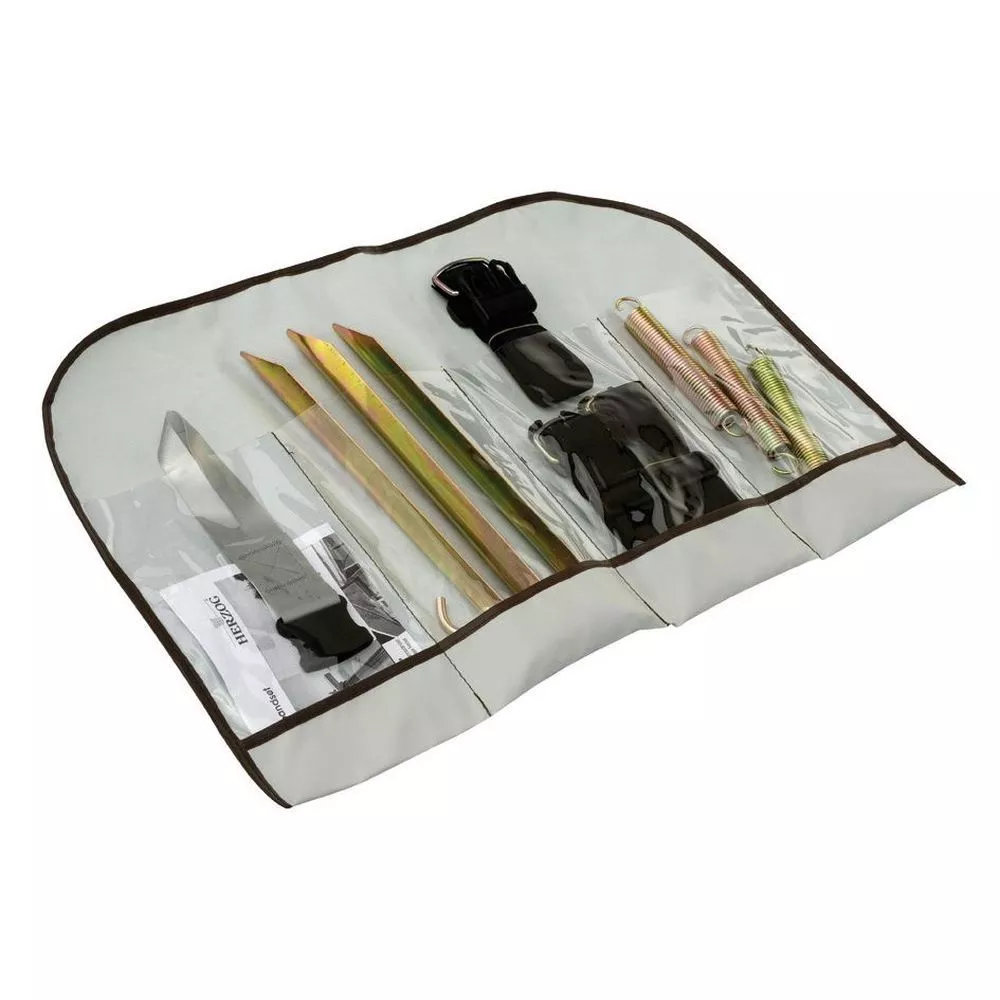 Dieses extrem robuste Abspannband sichert dein Zelt oder Vorzelt bei starkem Wind. Das innovative Sturmband wird an den Seiten der Vorderwand eingeclipst, ohne das seitliche Vordachgestänge zu belasten. Einfacher und effektiver kann eine innovative Abspannung nicht mehr sein. Durch den Einsatz zusätzlicher Spiralfedern, wird die Zugbelastung auf Gurt und Zelt deutlich gedämpft. Eine lohnende Investition in die Sicherheit deines Zeltes.