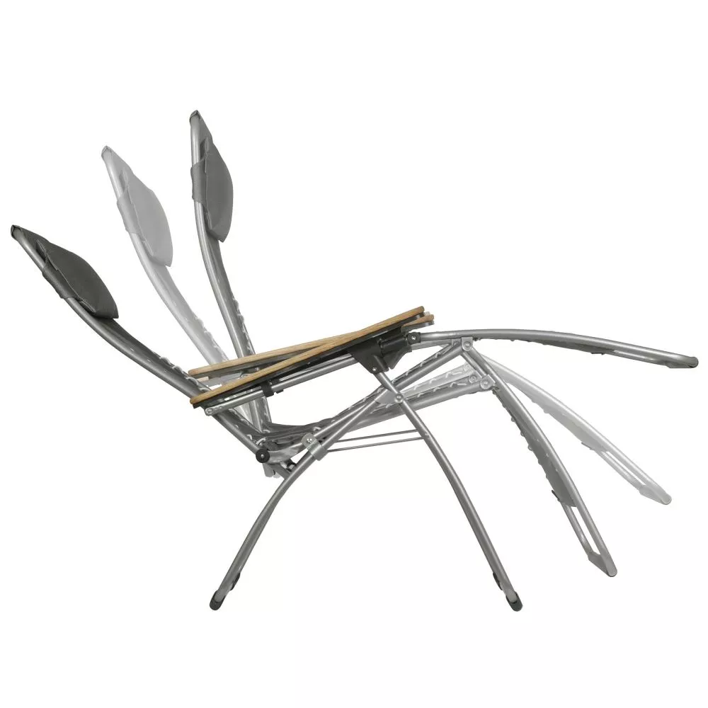 Hervorragenden Komfort liefert die gepolsterte, 3 cm dicke Sitzfläche mit einer Füllung aus hochverdichtetem Schaumstoff. Armlehnen aus Harz mit Schaumstoffeinlage bieten zusätzliche Bequemlichkeit in der gewünschten, stufenlos einstellbaren Sitz- oder Liegeposition. Die Einstellung „Schwerelosigkeit“ (mit den Füssen leicht oberhalb des Herzens) schenkt eine ausgezeichnete Entspannungsposition. Fixiert wird die gewählte Position einfach und sicher mit einer Feststellbremse. Das Gerüst des Camping-Relaxstuhl RSX von Lafuma bildet ein solides HLE-Stahlrohrgestell mit hoher Elastizitätsgrenze. Der attraktive Bezug aus einem angenehmen Baumwollmischgewebe ist abnehmbar und mit einer Aufhängung an austauschbaren Gummischnüren für beste Federung ausgestattet. Ein verstellbares und abnehmbares Nackenkissen unterstützt die rückenfreundliche Ausführung des Relaxsessels.