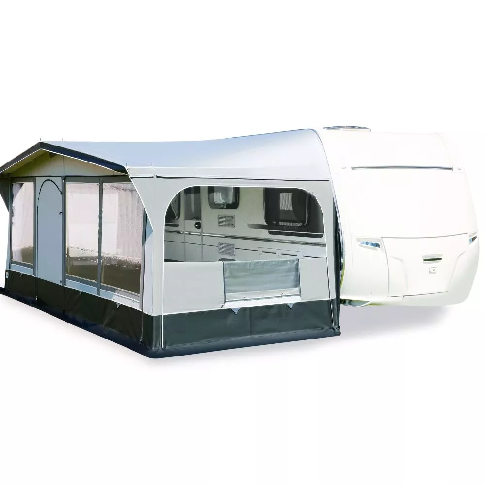 Das schlichte Caravan-Vorzelt bietet alles, was für den Alltag auf dem Campingplatz benötigt wird. Flexible Aufbaumöglichkeiten lassen einen wundervollen Campingurlaub bei jedem Wetter zu. Fünf Zeltteile bestehend aus dem Dach, zwei Vorder- und zwei Seitenwandelementen, sowie das 25 mm Stahlgestänge sorgen für leichten Auf- und Abbauen.